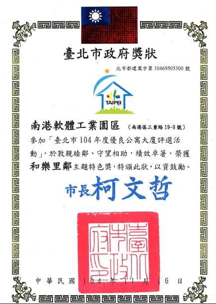 台北市104年度優良公寓大廈評選活動和樂里鄰主題特色獎