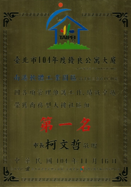 台北市104年度優良公寓大廈評選活動商務型大樓組第一名