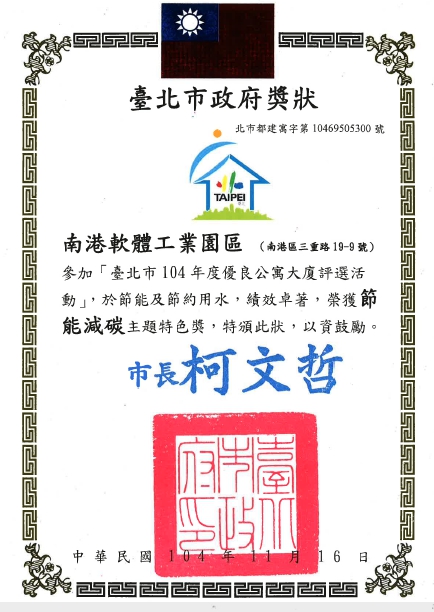 台北市104年度優良公寓大廈評選活動節能減碳主題特色獎